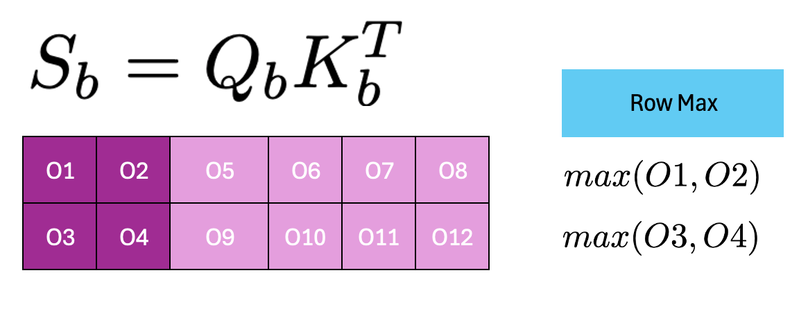 On chip we compute the dot product (s_ij), compute the local row-maxes (m_ij), the exp (p_ij), and the expsum (l_ij)